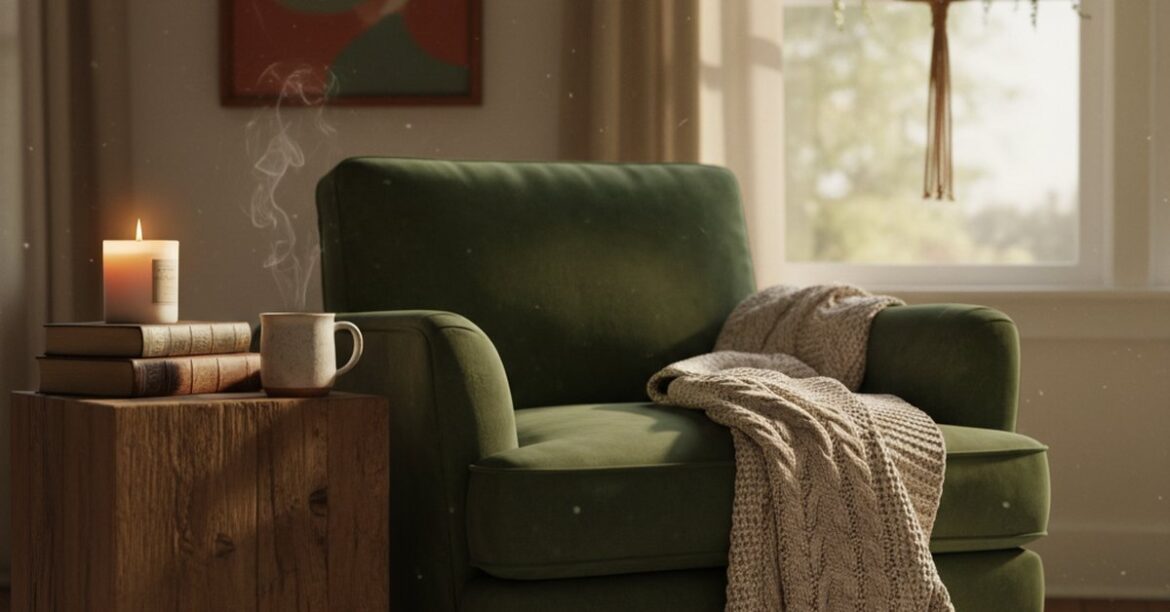 - Miękkie tekstylia: pledy, grube koce, welurowe poduszki.